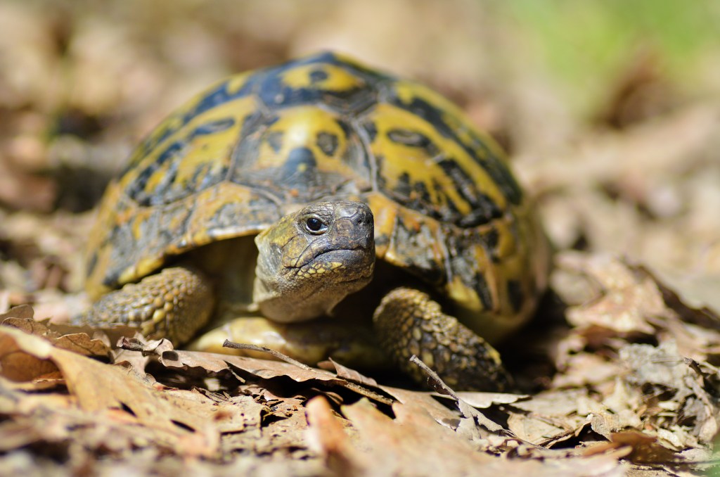 És l’única tortuga terrestre citada al Port. Té una closca de fins a 20 cm de coloracions entre negres i grogues, sent fàcilment diferenciable de la resta de tortugues.